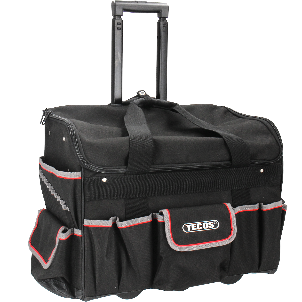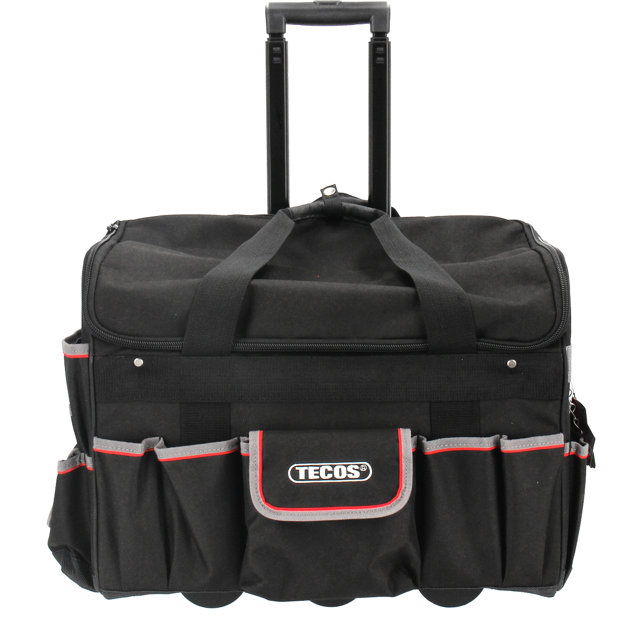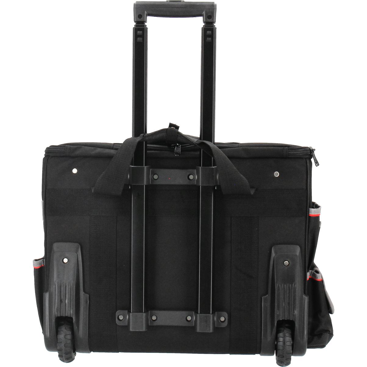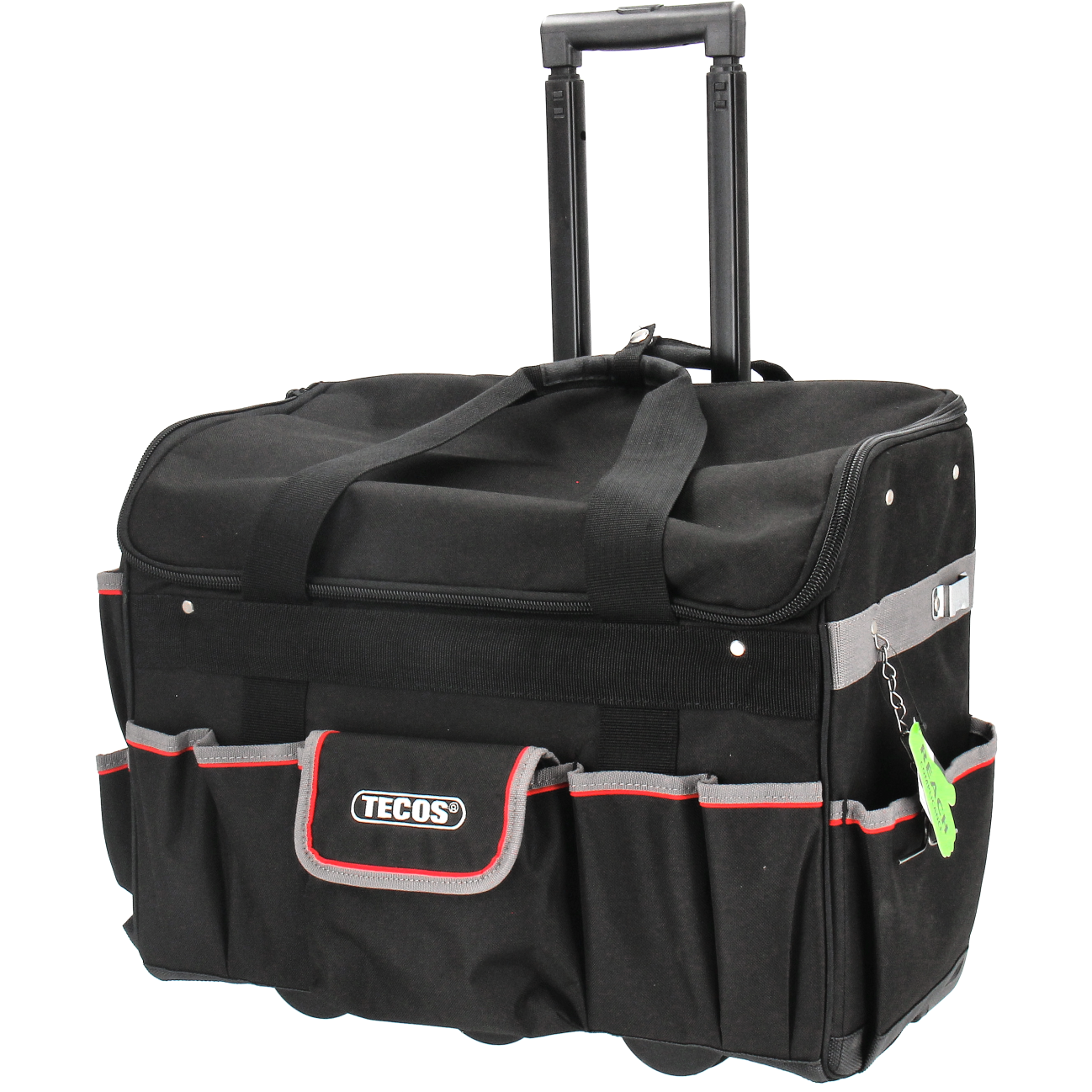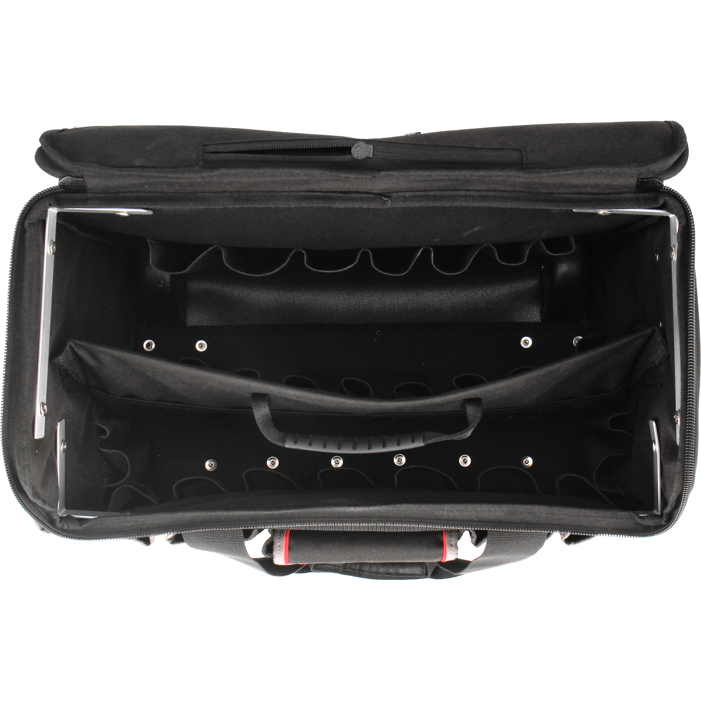 Proff værktøjstrolley med flere rum/indlæg til sikker opbevaring af værktøj. Bærestropper og lynlås som kan lukke trolley helt.