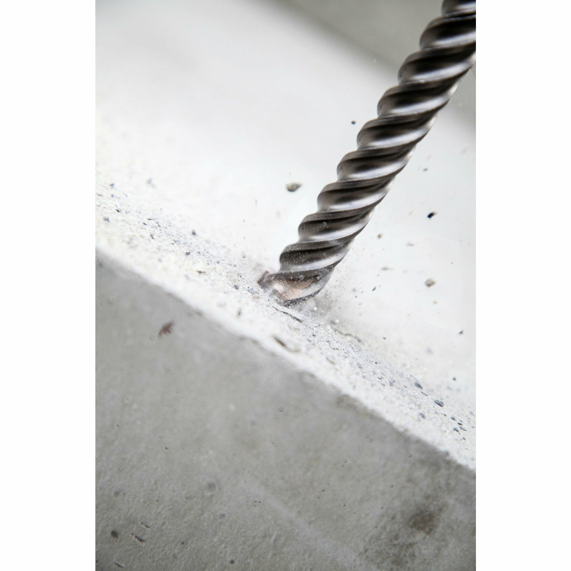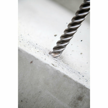 Boret er designet med et borehoved, hvor spidsgeometrien og blokken med de 4 skær sikrer centrering samt stor destruktionskraft i selv de hårdeste betonkvaliteter.